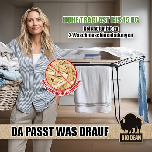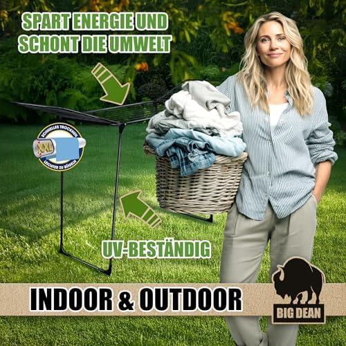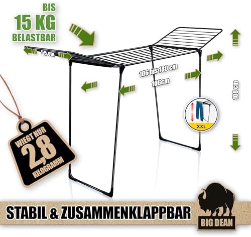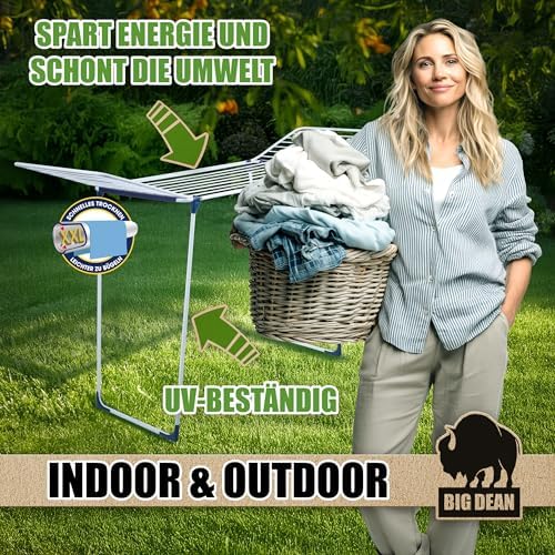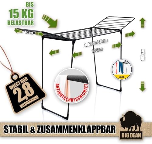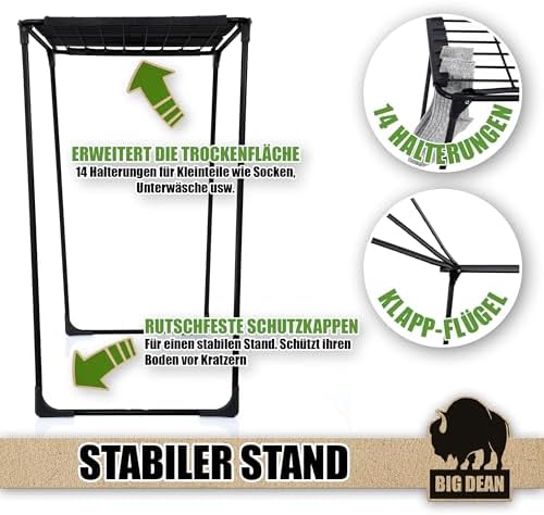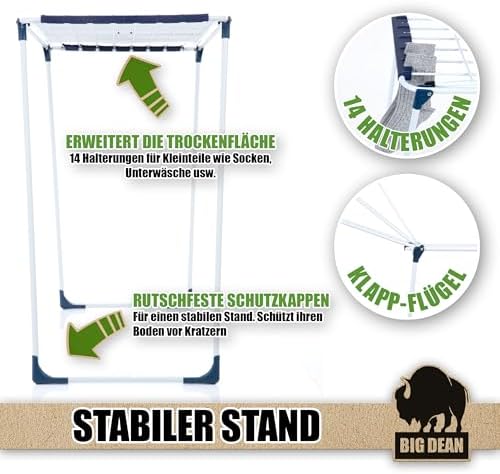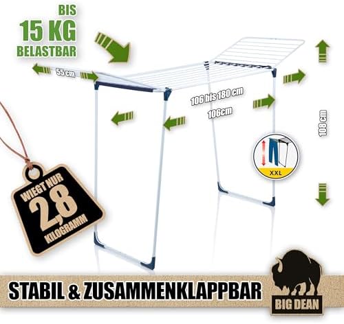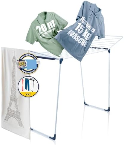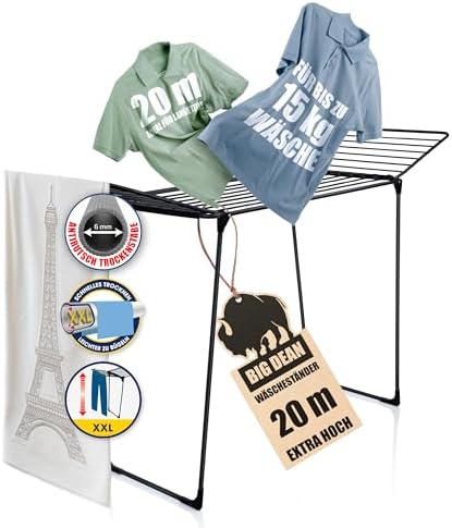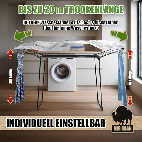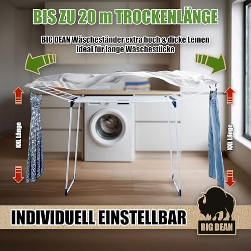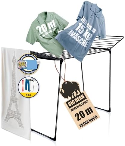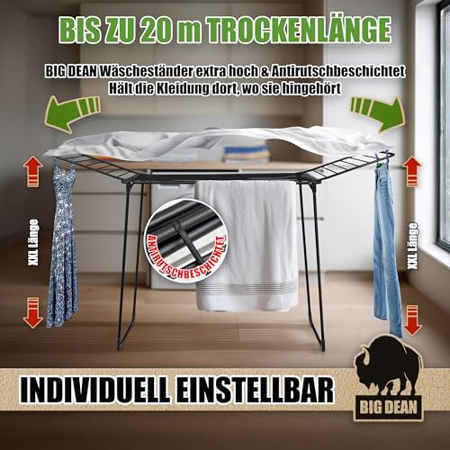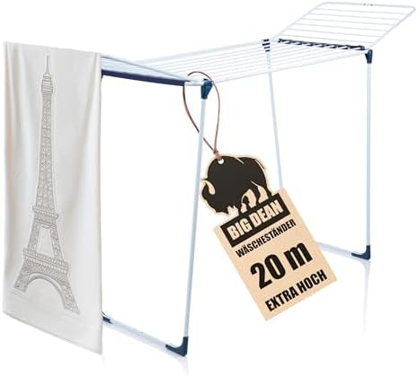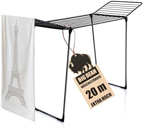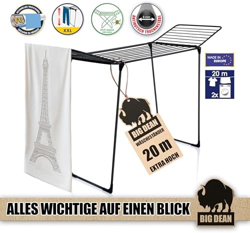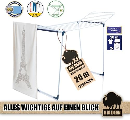 BigDean Wäscheständer XXL 20m - Klappbar, platzsparend und extra hoch für effizientes Trocknen in jedem RaumBigDean Wäscheständer XXL 20m – Klappbar, platzsparend und extra hoch für effizientes Trocknen in jedem Raum