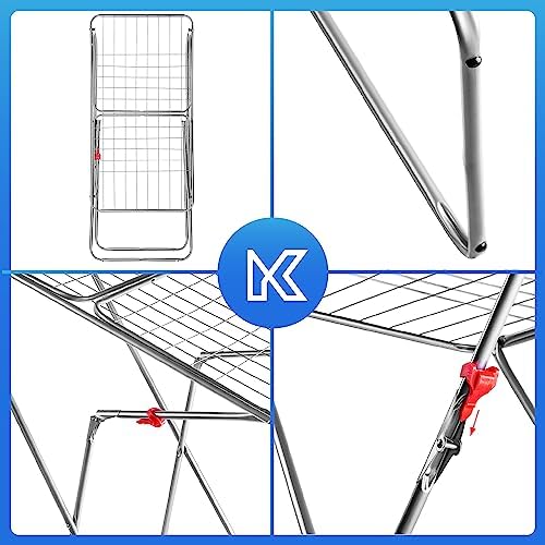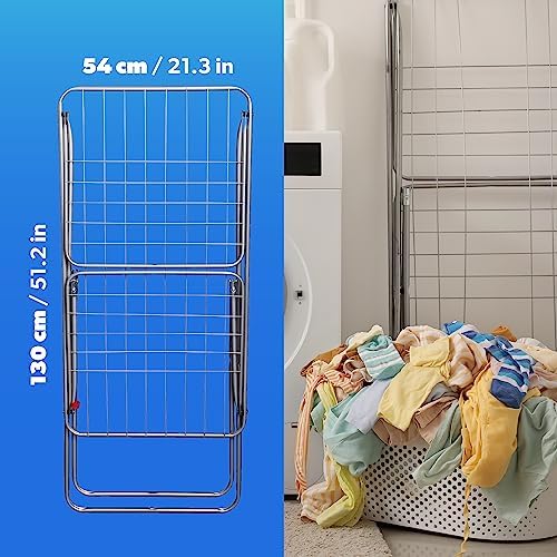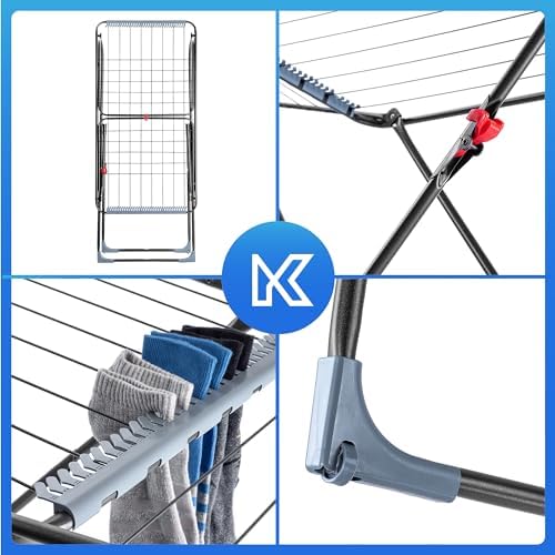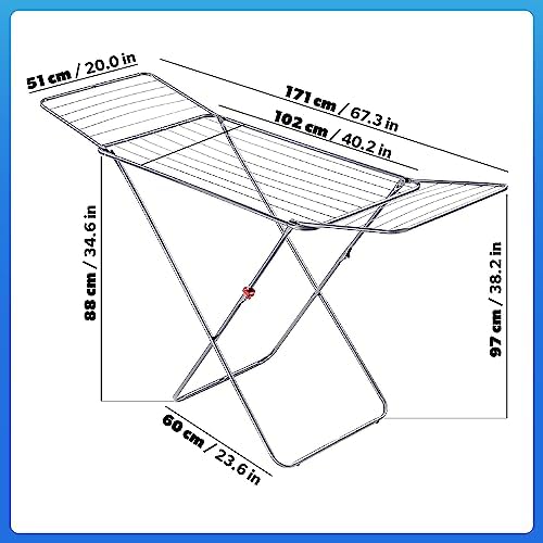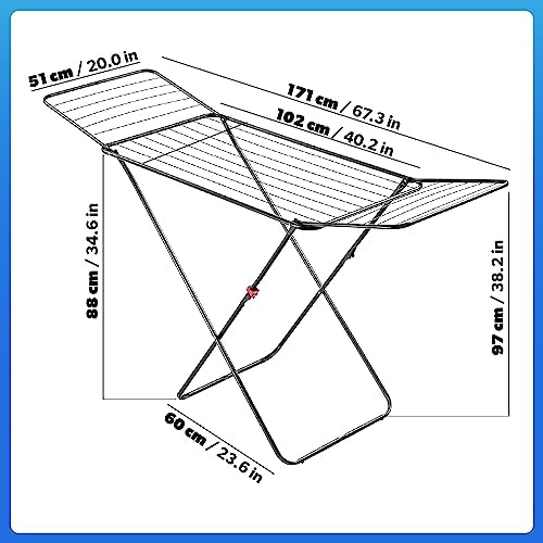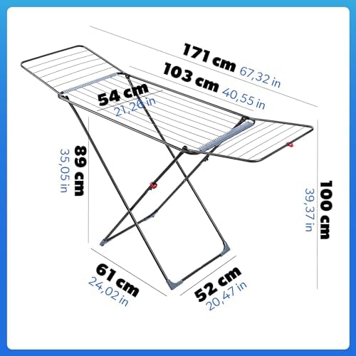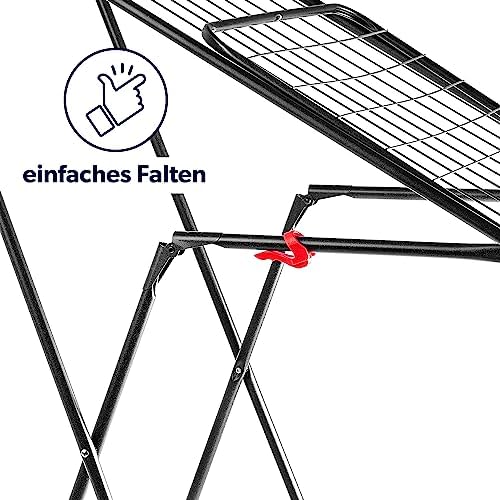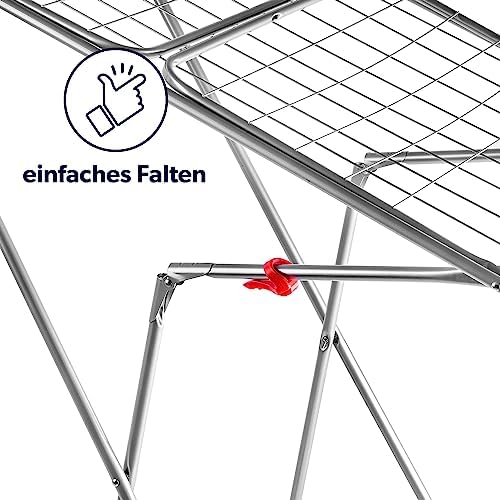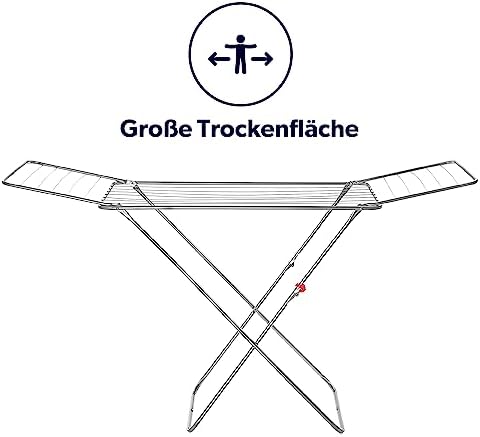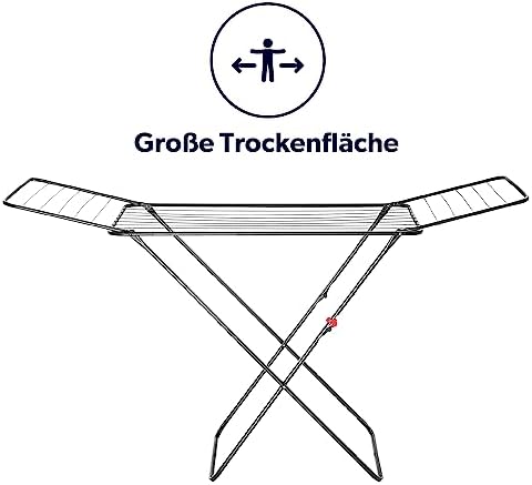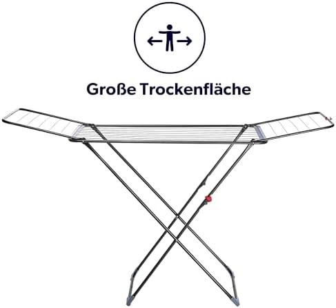 Mit einer beeindruckenden Größe von 180 x 55 x 101 cm beim Aufklappen, bietet der Standtrockner ausreichend Platz zum Trocknen Ihrer Wäsche. Dies ist besonders vorteilhaft für Familien oder größere Haushalte, in denen viel Wäsche anfällt. Der großzügige Platz hilft, Ihre Kleidung ordentlich und effizient zu trocknen, ohne dass es zu einer Überladung kommt.