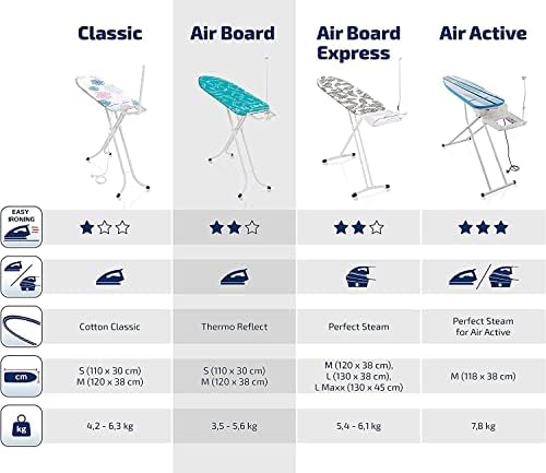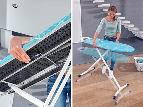 Mit einer großzügigen Fläche von 120 x 38 cm ist dieses Bügelbrett ideal für das Bügeln von Hemden und Blusen. Die spezielle Form ermöglicht es, auch schwer zugängliche Stellen mühelos zu erreichen, fließende Bewegungen sorgen für ein makelloses Ergebnis ohne Falten.