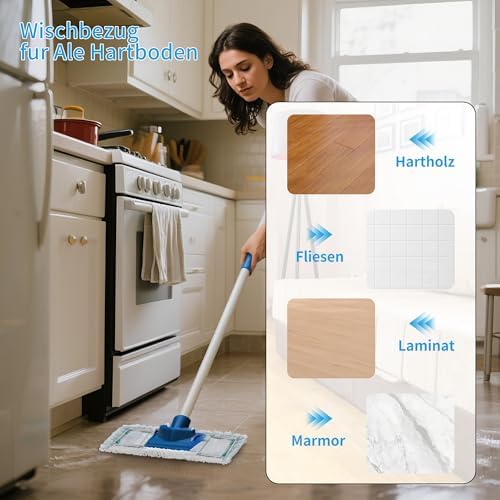 Unsere Leifheit Wischbezüge sind extrem anpassungsfähig. Sie eignen sich für eine Vielzahl von Bodenarten, einschließlich Holzböden, Keramikfliesen, Marmor, Laminat und Vinyl. Diese bodenfreundlichen Bezüge reinigen nicht nur effektiv, sondern sorgen auch für eine streifenfreie Oberfläche, was die Pflege Ihrer Böden erheblich erleichtert.