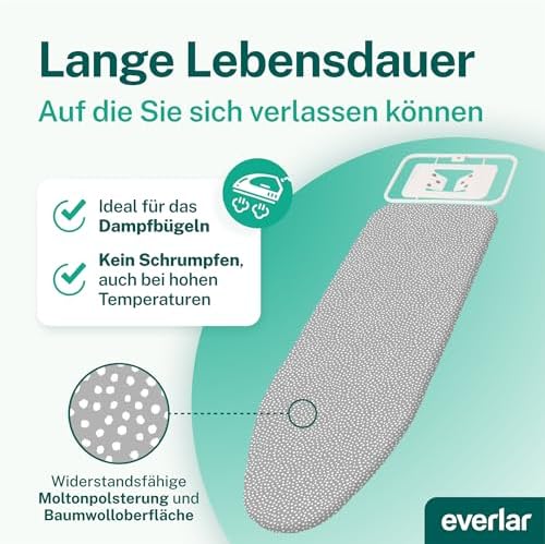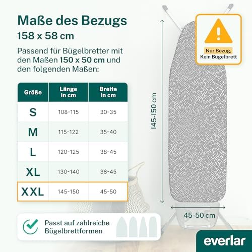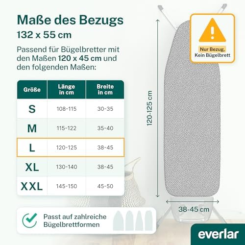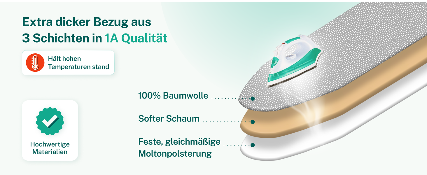 Premium Bügelbrettbezug 120×40 cm I Made in Germany I Komfortpolster für Dampfbügelstation I OEKOTEX100 Qualität