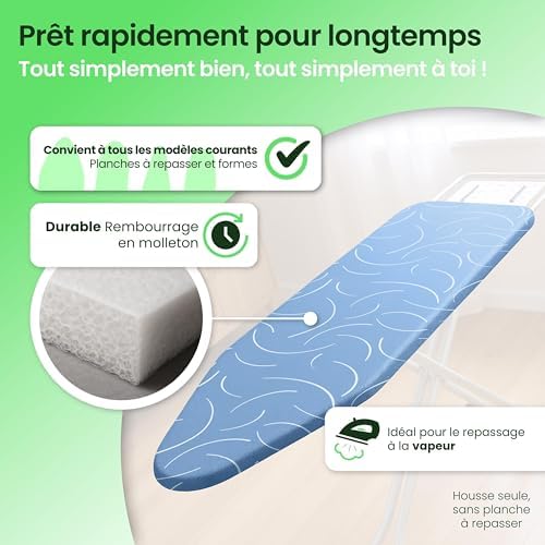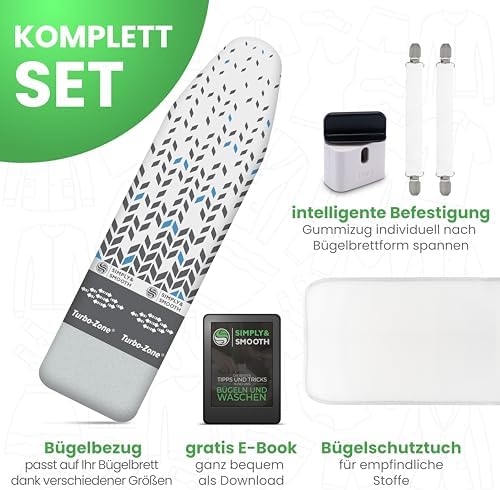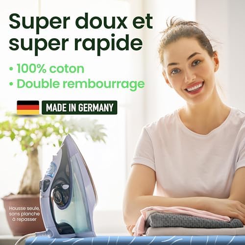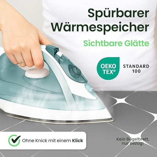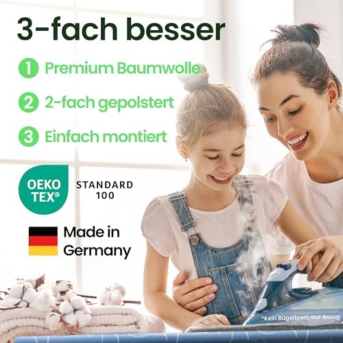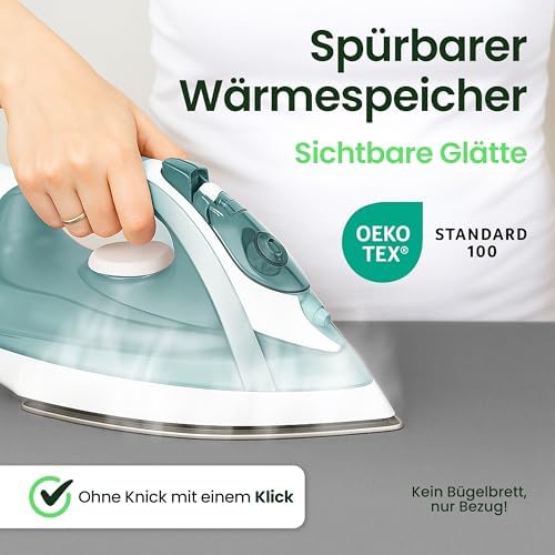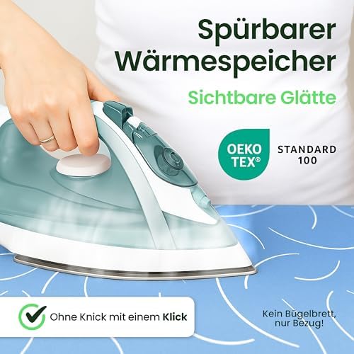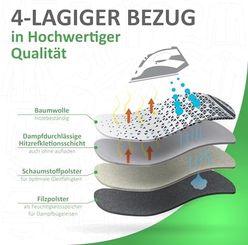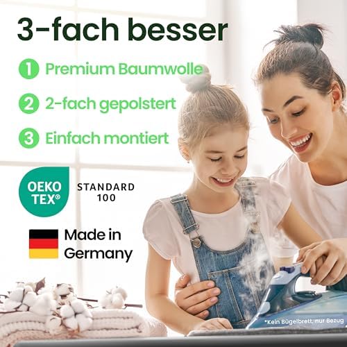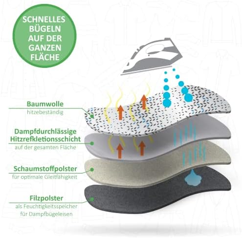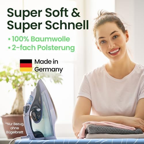 Erleben Sie mühelose Bügelergebnisse mit unserem hochwertigen Bügelbrettbezug, der speziell für eine effiziente Nutzung entwickelt wurde. Die Hochgeschwindigkeitsoberfläche kombiniert mit einer doppelten Komfortpolsterung aus weichem Schaumstoff und robustem Molton sorgt für ein schnelles und angenehmes Bügelerlebnis.